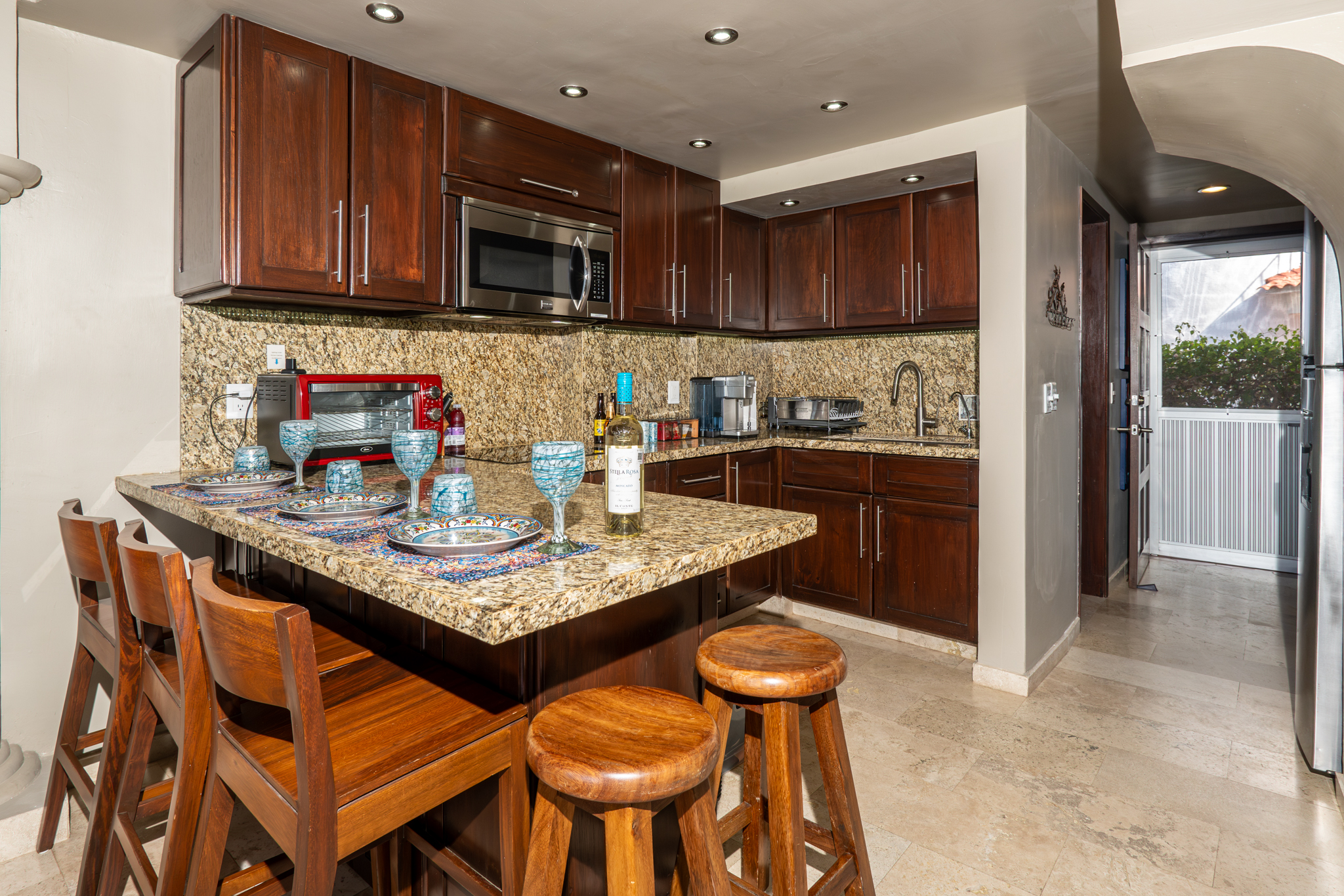 Everything has been remodeled. Our unit is decorated with local art and has modern decor with travertine stone floors and granite counters throughout.