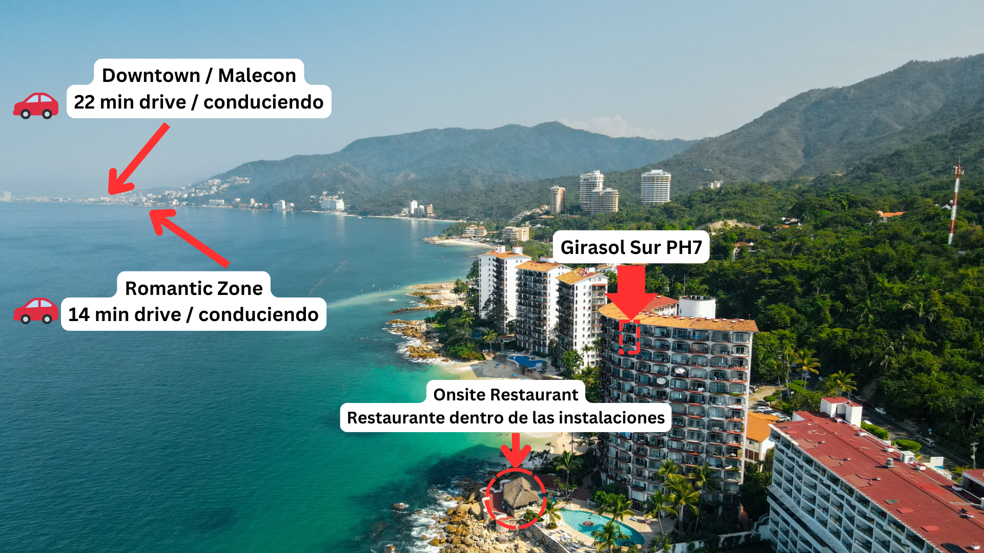 The ocean front condo is located on the South Shore 10 min south of Old Town about halfway between Old Town and Mismaloya. Taxis, and buses are both available. There are many casual and fine dining options in Old Town along with lots of shopping and strolling along the Malecon . You can visit the Marina area and surrounding towns including Nuevo Vallarta, Punta Mita, Sayulita, Las Animas and Yelapa. There are lots of activities in the area including parasailing, ATV tours, day cruises, zip lining, the zoo, the botanical gardens, hiking, snorkeling, and enjoying the local beaches.