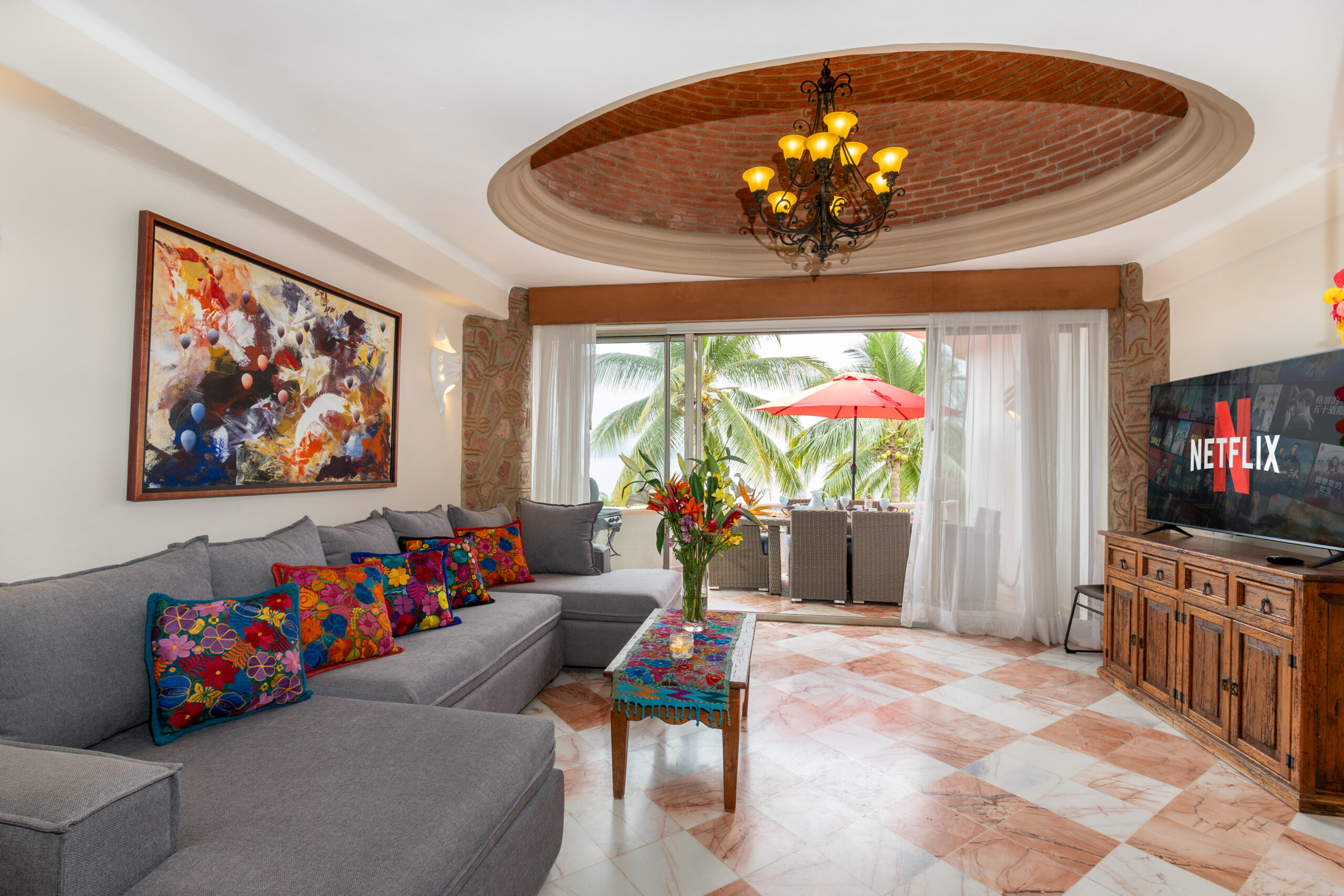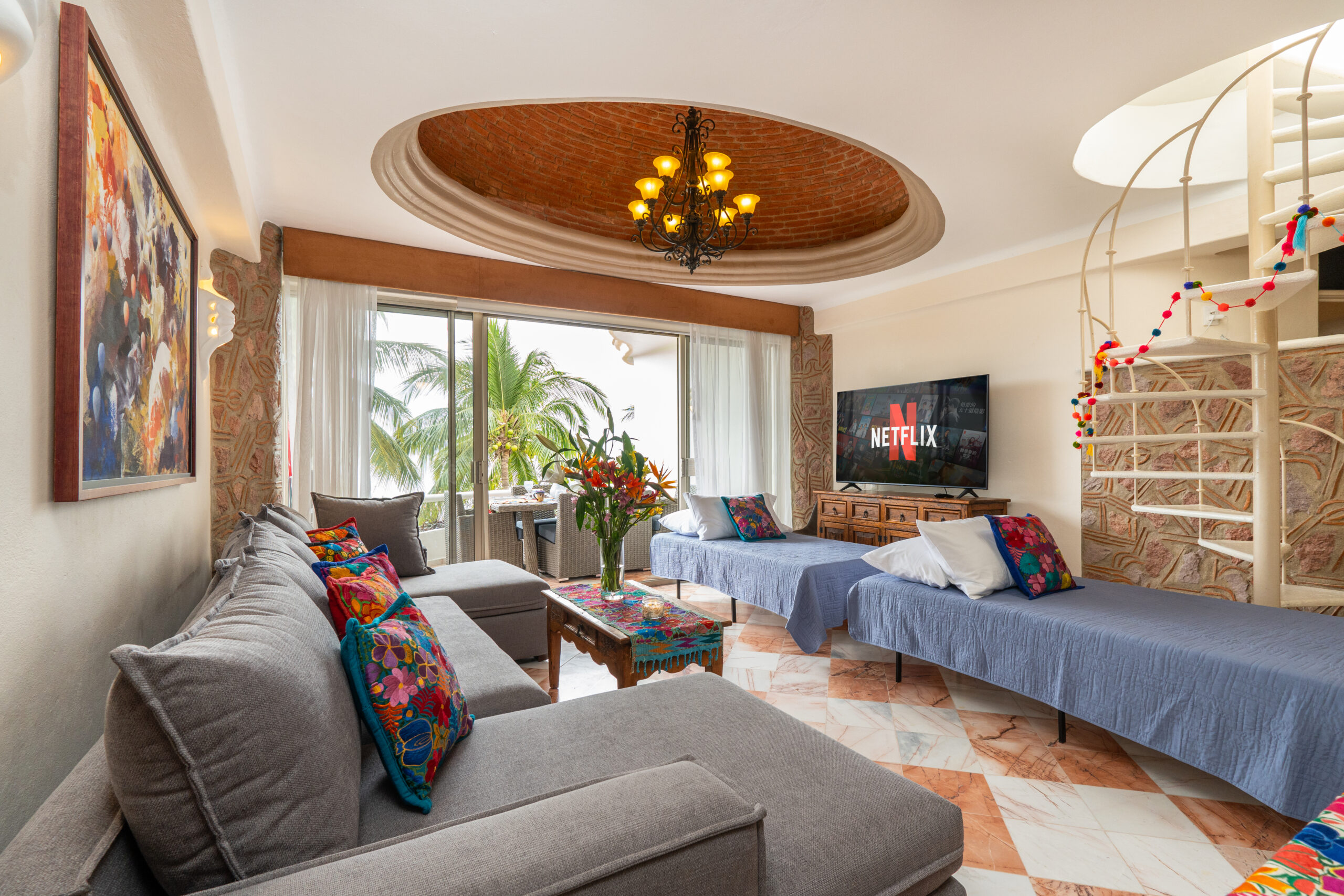 Ocean front luxury Penthouse condo, huge unique ocean front roof top terrace + 2 ocean front balconies, pool, large beach with great sand, beach chairs & umbrellas, Private gas BBQ, whale & dolphin watching from your balcony, elevator, quiet, perfect for families, seniors with mobility challenges(not wheel chair friendly), groups of friends, & small children.