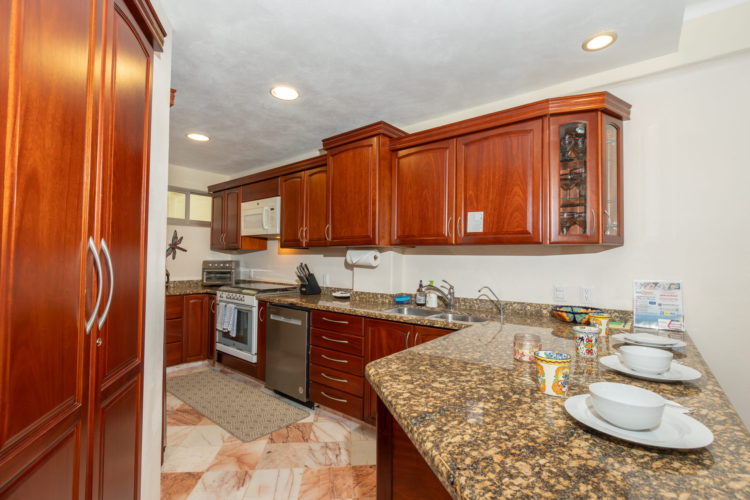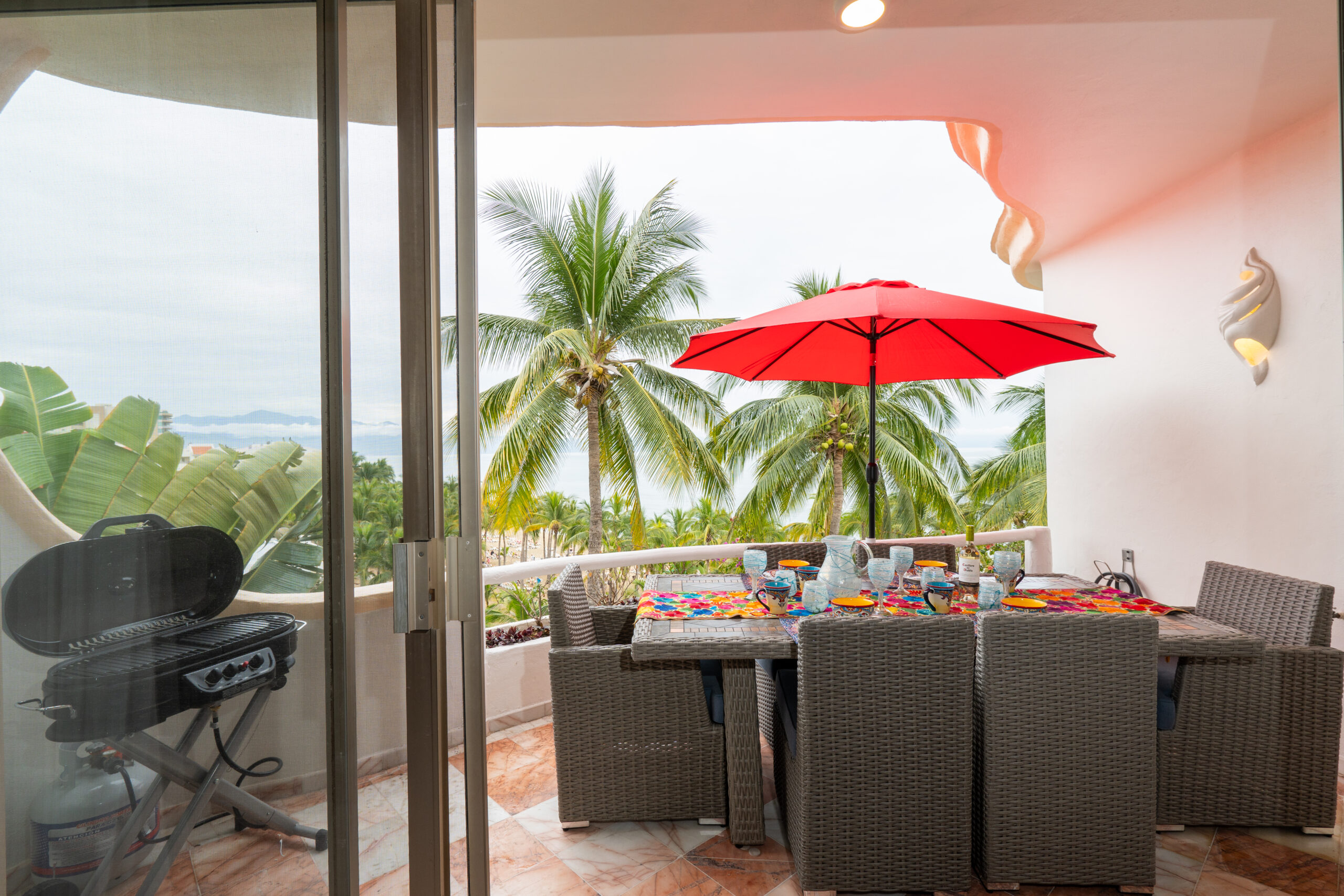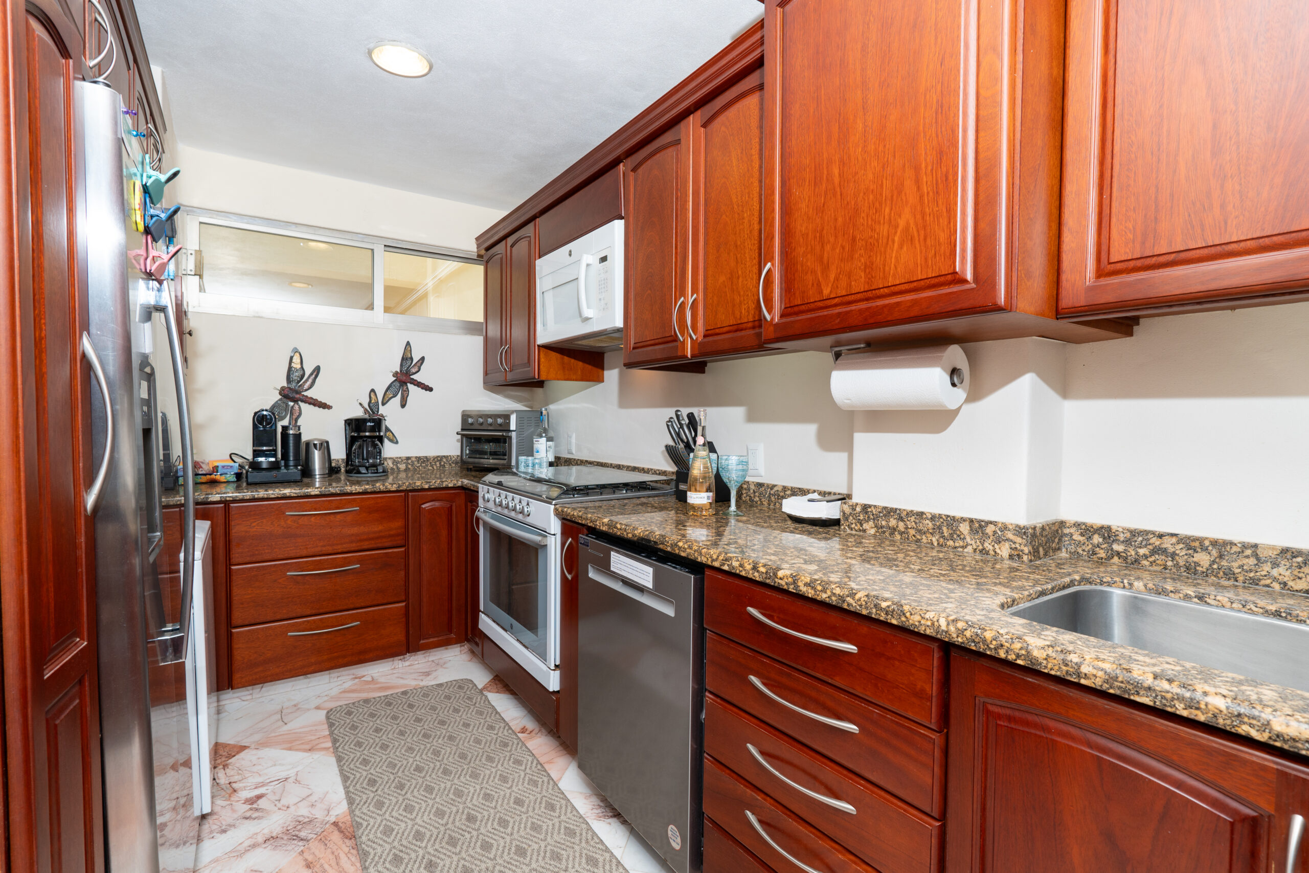 Kitchen fully equipped, towels, linens, beach towels, BBQ, washer/dryer, dish washer, maid service is provided at no additional costs for stays of 10+ days.