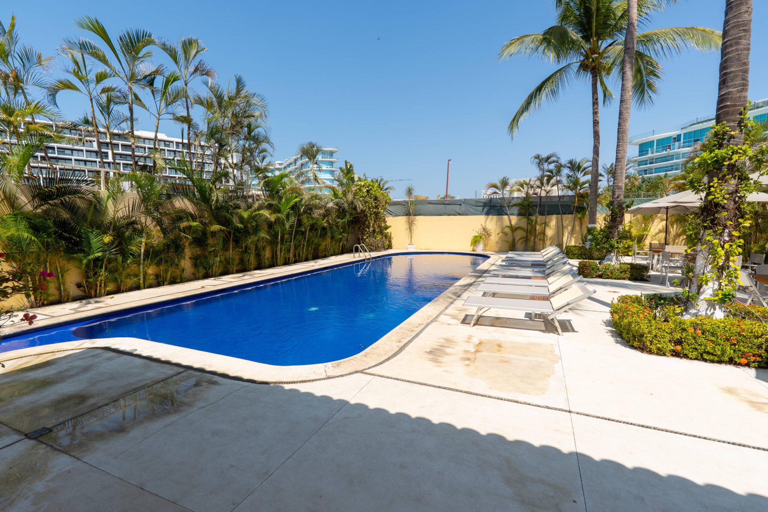 Comfortable accommodations for 6 people. Large common area pool, short walk to family friendly beach. Beautiful views of lush jungle and mountains, private beach access 1 block away. Kitchen fully furnished, apartment with lots of extra amenities. Common area pool and sun deck is nicely appointed, quiet and relaxing. Secure onsite parking, with 24 hour security in a gated community. Grocery shopping short drive, beach front dinning options within walking distance. Building has an elevator.